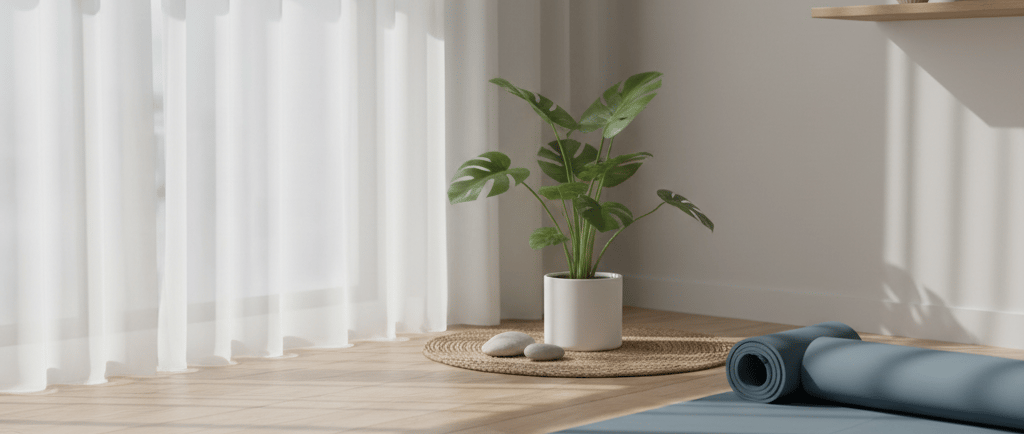 Physical Declutter: Physically remove non-yoga items from your immediate view. Put away stray laundry, stack those books neatly, and clear any general household clutter. Your mat should be the central focus.